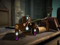 The story mode is a big of a mixed bag. Without argument, it is a step up from LittleBigPlanet's story mode. There is more variety to the levels, due in no small part to the improved tools available to the creators, and the cut scenes and characters are charming and funny without overstaying their welcome. Despite the variety, though, not every level shines. Some serve more as examples of what <I>LBP 2's robust creation engine can do instead of being levels that I'd want to replay. In particular, I found a lot of the grappling hook segments to be awkward and uncomfortable. Adjusting the length of the hook on the fly never felt particularly natural to me, and I was glad when levels didn't use the ability. On the other hand, the most creative levels in the game stand out quite well and are plenty of fun to play. The only complaint I can give is that nothing feels perfectly natural, since the game design is all about figuring out the cleverest way to do things using the limited tools. When it works, it's very impressive, but you have to be willing to compensate for the fact that all but the simplest actions involve some jerry-rigging and creative design. The impressive aspects of the creation engine far outweigh the nagging control complaints, though.