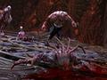 Despite the additions, the simplicity of the game can be a dividing factor for players. The levels are straightforward affairs, and while most areas look ripe for exploration, there are always a number of things to keep you focused on the only path you can take, whether it's invisible walls or doors that should open but never do. There are also opportunities to scare the living daylights out of the player, but the game never takes the time to do so. It maintains the horror by being grotesque, but that's about it. All you really have to do is beat up monsters, perform fatalities, occasionally dodge traps and use monsters as keys for switches. It helps that the platforming works out fine and that the combat feels just right. Seeing the same fatalities performed on the same monsters over and over again can feel tiring, but beating up on them never feels old, especially on the side-scrolling levels, where they seem to expire more easily. While you can get away with using the same basic combos and moves in the easy difficulty level, anything higher than that will require some knowledge of more efficient moves. If you're looking for a deeper gameplay experience, though, you should look elsewhere.