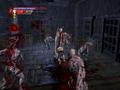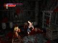 The monsters look fine but generic by today's standards. Aside from exposed muscles and lack of skin, they look grotesque enough but aren't especially haunting, though some of the bosses are creative, such as the baby doll made up of various household items. One graphical feature to take note of is the gratuitous amount of blood in the game. There isn't one area where the color red isn't present, and the amount of blood is so large that it splatters all over the place (including the screen) after every hit. The splatter isn't enough to obscure the action, but it does uncover things, like invisible walls, and after a short while, the effect loses its shock value, so it becomes more bothersome than exciting to see as the game progresses.
