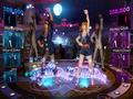 Lots of work was done on the backgrounds this time around. Each feels drastically different, with a bolder color scheme and some distinction to each venue instead of recycling the street element from the original title. The subway station and the tower are made even more impressive by the fact that they change locations during the middle of a song. One moment, you may be at the waiting platform but the next, you'll be dancing inside the subway car. The lighting has benefited greatly from a scheme that diffuses the light to make it softer. The effect is similar to that of viewing a lighted object through smeared glass; it's a mesmerizing effect that adds wonders to the art style. Finally, the freestyle sections also got a graphical facelift. Instead of showing you bathed in light, you're displayed as a bulk of 3-D pixels instead. When shown a video of your freestyle performance, you're shown against an arc of neon light mixing in with your background, making the piece feel like part of the game.