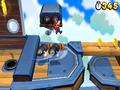 Almost all Nintendo 3DS games have a 3-D effect that isn't really necessary to play the game. Super Mario 3D Land breaks that streak, as it is probably the first game on the system to make the use of 3-D almost a requirement. The game provides two different levels of 3-D outside of what can be gained by using the system's slider. The effect does the usual things, such as add depth to scenes and make a few elements (e.g., the HUD) pop out more, but that separation of items is more beneficial when judging the distance from one platform to another. It's not as if the same thing can't be done in 2-D, but instead of seeing the distance and acting on it, you'll spend time manipulating the camera to get an idea of what needs to be done. Considering how this game really feels like it's built on the use of 3-D, you should only use 2-D alone if you want to make things tougher on yourself.
