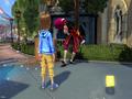 Once you're done with character creation, you have free rein over the park. Almost every area is open, and you're free to explore. Without going on quests, the most you can do is roam around, picking up coins and shopping for items like costumes and official Disneyland pins. Completing quests and meeting up with people gives you more access to more activities. Getting the camera and photo albums lets you take pictures of famous landmarks and any of the park characters. Grabbing the baton lets you conduct musical numbers in certain spots, such as the Haunted Mansion's four busts. The magic wand lets you make most inanimate objects move and dance while the blaster lets you engage in shooting galleries at various spots. Other objects let you interact further with the world, giving you plenty to do when you aren't busy with an objective.