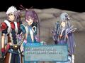 The battle system plays out like a Tales title. You have direct control over one character, but you can switch between them on the fly while in battle. You take three companions from your party into the fight, along with an extra spot for the current Reyvateil. During the fight, your Reyvateil remains in one spot on the battlefield, singing a hymn that powers up your characters in the fight. There's an odd mechanic that involves stripping away the clothing of your Reyvateil to "purge," or unleash stat bonuses to your characters. These bonuses come in the form of things like Attack Up, Defense Up, Resistance to Poison and so on. If you manage to purge the Reyvateil four times within one battle, you'll unleash a special move that causes a huge amount of damage and usually guarantees a win.