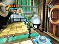 The second challenge, Could You Be So Bowled, has you playing as Jak as he attempts to rescue captive aliens. To do so, he has to bowl a special ball that can break cages and disintegrates when it runs out of momentum. Aside from the ramps, speed rings and bumpers littering the field, the interesting thing about this challenge is that you can alter the direction of the ball while it's in motion. It provides more strategy than simply throwing the ball and hoping for the best, but it also forces you to adjust your throw by stopping short of your normal range to get better control of the sphere. It takes some getting used to, but this challenge is quite enjoyable.