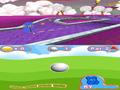 If there's one thing that stands out the most in the previous paragraph, it would be the limited number of holes in the game. Three holes per course is very short, no matter how you look at it, and even with the requirement that you finish the course at par or lower, it won't take very long before you unlock all 12 holes. Further adding to the disappointment is the fact that the courses consist of nothing more than a putting green with inclines and bumps obstructing your path. Despite playing in lands filled with trees, toy soldiers and candy canes, nothing that differentiates minigolf from regular golf is included in each course. The lack of interesting obstacles in the field makes for some rather boring and mundane golf — something not usually associated with this offshoot of the popular sport.