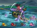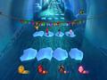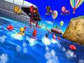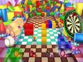 The boss fights add a nice wrinkle to the party game, and a few other changes are also much appreciated. The act of throwing dice has been completely replaced with simple minigames. Whether it's popping numbered balloons, throwing darts or dropping a ball into a row of boxes Plinko-style, you never leave things completely to chance when it comes to how many moves you're allowed to make. To make the proceedings go faster, everyone participates in the minigames simultaneously. Finally, the minigames are all quite amusing, with a decent mix of classics that you've seen before, such as rolling the opponent off stage, to newer fare like an on-rails shooting sequence or a small pinball competition.