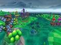Wii games tend to look very good when a game goes for a bright, cartoon-like look, and this game shows just why that is the case. Even on an HDTV, the 480p visuals produced don't give out a slightly blurry effect that other games do when they try to go for more subdued color schemes. Everything looks more alive with the color scheme used, and the backgrounds for both the game board and the minigames look great. As for the characters themselves, Pac-Man looks good, especially since we've already seen him with appendages, and the new characters fit in with the universe quite well. What doesn't fit well are the redesigns of the ghosts, which not only change their body proportions but also give them hair. It's a bit off-putting and unnecessary, since there was nothing wrong with the old ghost designs from the other 3-D Pac-Man titles.