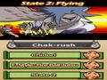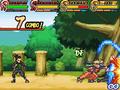 In what seems like a tradition for the series, the fighting engine is very different from its predecessors. Instead of a 3-D space like the Ninja Destiny series, the game goes back to the 2-D arena style seen in the Ninja Council series. The arenas are much smaller, so there is no need for a minimap. Fights can have a maximum of up to four people with any configuration, whether it's a free-for-all or team-based. All matches last for one round, which ends when all opponents have been defeated or time expires. Every fighter still has a repertoire of basic and strong attacks as well as special moves that can be activated by touching the appropriate space on the touch-screen. Defensively, players can either block or teleport to another area. Like the Ninja Council series, items play their part in the fight, though they appear randomly and have immediate effects instead of being something that the player can activate at his own discretion.