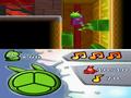 The sole exception to this rule and the one mildly original game mechanic in de Blob 2 is the inclusion of Chroma Cameras in certain stages. If you manage to track down one of these, then after the stage concludes, players are dropped into a sort of augmented reality game where they have to use the DSi camera to take pictures of objects with certain colors around their home. The color needed between every snapshot changes, so you'll often find yourself running around looking for something green, then blue, then brown and then purple. In spite of the fact that this is a DSi-only feature and sometimes the game can be picky about getting a specific shade of a color, it's still quite fun, and those who manage to fill all the Chroma Cameras are rewarded with a Chroma Crystal. This power-up lets you change Blob's color to whatever you want at any time, so it's worthwhile to fill every camera. Clearly the development team understands how to make collectibles worthwhile, but they chose not to do so in most cases.