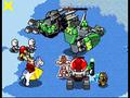 Graphically, Ninjago is better than its predecessor but still not something that takes advantage of the NDS. Everything is still sprite-based and shows some improvement by having characters be much larger than before, and the game is capable of showing more characters on-screen at one time. However, this excitement is soon diminished when you see the game sporting rudimentary colors that were last seen in the GBA era. It's also diminished when you see that the character animations aren't exactly smooth. It's humorous to see builders flail around when fixing structures or harvesting bricks, but seeing enemies break into pieces with missing animation frames doesn't feel satisfying. The camera perspective is isometric, instead of the traditional top-down of the prior game. While this gives it a more classic RTS look, there's no way to turn the camera to see if any builders or heroes are obstructed from view.