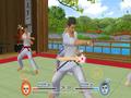 The controls feel slightly dodgy, depending on what you're doing. Straightforward movements seem to work best, so punches, side thrusts and curls get read almost immediately. Anything requiring round movements rarely gets read while slow, deliberate movements have a 50-50 chance of being recognized. It's a slightly frustrating system for beginners to overcome, but once you get used to how they want you to move, it's not that bad. It could have used more Wii Motion Plus support for better accuracy, but for what's there, it works well enough. Like We Cheer, the game supports two controllers per hand, and it becomes the preferred method since the one controller experience doesn't feel as fulfilling.