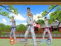 The game contains activities in several different categories and disciplines. When you start the game, you're presented with three different exercise categories with their own exercise disciplines attached to them. Dance Exercises are split into three categories that have been traditionally used for workouts in recent years. Both Aerobics and Hip Hop have 20 routines each while Latin Dance comes with 10 routines and 10 more that deal with hip rotations and thus exclusively use the Wii Balance Board. Body Conditioning is a mix of 20 yoga routines and 10 stretching exercises that should be familiar with those who've played exercise games in the past. Then there's Martial Arts Exercises, which bring 20 boxing and 20 karate routines as well as 10 karate form exercises that are really stretches and karate combined. Of the disciplines presented, the boxing and karate prove to be the most fascinating since no other title has tried to make them part of a workout routine. They also end up being the most intense ones and really work out the upper body if you start to put some force behind the punches and blocks. For exercise game fans, this alone makes the title worth considering.