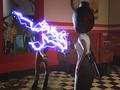 With the premise being a tad goofy, it's expected that the game's sound would be a strong point. The voice acting is pretty hammed up but expected when you consider what they're spoofing. You don't hear too much of it outside of the episode intros, but it works well enough. The music is fine but doesn't fit the motif too well. Despite the setting being in the '50s, you get more of a grindhouse feel to the tunes, making it feel like a modern homage to the '50s music style as opposed to something that could be mistaken for the real deal. It also tends to repeat often with little to no variation, so you'll tire of it rather quickly. This is made even worse when you play the level-ending song, which never seems to go in time with your button presses, let alone character actions.