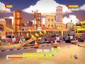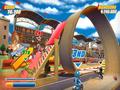 Although you're on a motorcycle, the game is more of a platformer than a racing title. While there are still a few opportunities for you to race against computer opponents, most of your time is spent navigating the course, avoiding spike walls and stripe, jumping over speedbumps and ducking under bars while taking off on ramps to perform tricks, such as jumping over buses and shark tanks. Crossing the finish line opens up the next course, but a few levels require stars to unlock. These stars are earned by performing certain tasks in a level, such as making a trick combo last through a whole run, getting all of the pickups in a level, or picking up the letters to spell "danger." Picking up hidden stars also adds to your total count.