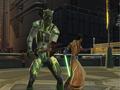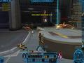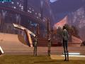 Even though both factions visit the same planets, they do so in a different order, and even, then they visit different areas with different quests. Each planet has an overall theme, such as the civil war on Balmorra, which frames the majority of the quests. You don't randomly get "Jawas killed my mother, get her ring back" quests that have their own context, but rather quests along the lines of, "We need to get something from the Jawas to further our goals on this planet." When you get to the brass tacks, it still amounts to the potential of either talking the item out of them or murdering their whole band to get it, but it is at least an illusion of context that never breaks, even when you know it is just an excuse to kill X number of Y mobs. It doesn't hurt that each planet is massively different, and you get to visit some of the big ones from the franchise, such as Hoth and Tatooine, as well as others, such as Taris, after it was ravaged during the events of Knights of the Old Republic.