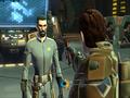 Storytelling, quest choices and alignment points all collide when it comes to completing quests in a group or tackling instances (flashpoints). In many cases, you see all group members conversing with the NPC in one big cut scene, and when it comes to making a conversational choice, all players pick their selection. The game then randomly rolls for all characters, and the one with the winning role is the one who speaks his or her line. In the event of light or dark side choices, all players still get the alignment points for their selection regardless if they win or not, but the winner's choice is how that part of the instance plays out. When you are in a group and participate in a conversation selection roll, your character gains social points, which allow you to gain social levels and unlock largely cosmetic items, such as unique mounts.
