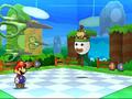 Various enemies react in different ways to different attacks. Use a jump attack on a Koopa Trooper, and you'll knock it into its shell. Use one again, and you'll knock it into every enemy behind it for massive damage. This even carries over to boss fights. The first boss is a giant Goomba formed from many smaller Goombas. He has a ton of hit points and hits like a truck. You can beat him normally, although it involves proper management of items. Alternately, you can find a special scissors sticker. When the monster Goomba reveals its weak point during a single attack, you can use the scissors to separate the smaller Goombas, leaving the poor monster vulnerable to an easy thrashing.