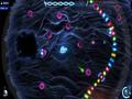 Enemies also leave behind special colored cubes, and picking them up unleashes the puzzle aspect of Transcripted. In every level, you have a constant DNA strand that needs to be destroyed before you move on to the next level. The strand happens to be multicolored, making the game feel like Zuma, albeit with a more mobile craft in your possession. When in possession of a cube, you'll be slower but immune to enemy fire, giving you time to concentrate on getting the right shot to break down the DNA strand. The protection doesn't last long, however, as you become vulnerable again when you fire off the cube or hold on to the cube for too long.