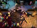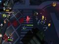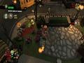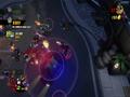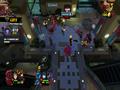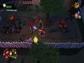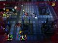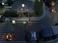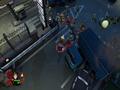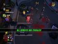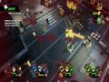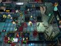 The graphics adopt the same style as Burn, Zombie, Burn. Both the heroes and the zombies are styled in exactly the same way, with big, plump heads and long arms to go with their small bodies. The animations are nice and, despite being a zombie apocalypse, the world gives off some bright colors thanks to the game's cartoon style. It looks fine in this style, and the engine can handle lots of enemies and effects without slowdown. The only knock against it would be the fact that your view can often be obscured by structures because of the game's viewing angle. Building walls and roofs hide you from view, and while a small icon shows your relative position as well as the positions of zombies, it doesn't show up all of the time, making it a feature that barely works. Doing the classic maneuver of making some objects translucent when you go behind them would have worked much better, and one has to wonder why this wasn't implemented instead.
