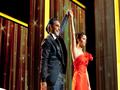 After the reaping, they are whisked away to the opulent Capitol, where PR guru Effie Trinket (Elizabeth Banks) and an intoxicated Haymitch Abernathy (Woody Harrelson) mentor them. Up to this point, "The Hunger Games" has sounded like "Survivor" or "The Running Man," but since the Hunger Games is televised, there is also some pageantry involved, so we'll toss some "Project Runway" into the mix. Stylists prepare the tributes for television by making sure they're perfectly groomed and manicured. Katniss' stylist, Cinna (Lenny Kravitz), creates some outfits that make her memorable to the audience — and appealing to potential sponsors.