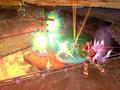 The gameplay consists of air battles and ground battles. The air battles are rail shooter segments, not unlike Star Fox. Pit soars through the air, blasting bad guys with a wide assortment of weapons. Due to magical limitations, Pit can only fly for about five minutes before his wings catch on fire and burn up, so each rail segment is about five minutes long. You move with the Circle Pad and aim the reticle with the touch-screen. These controls can be adjusted to use the ABXY buttons or the d-pad to aim, but neither has the fine control of the touch-screen. Your weapon fires using the L button, and holding it down fires a steady stream of shots. Don't fire for a bit, and Pit charges up a Charge Shot, which does more damage and has special effects. You can also earn Special Attacks, which are basically screen-clearing bombs, by defeating enemies. Enemies who get up close can also be attacked with a melee attack, which does far more damage than a ranged one.