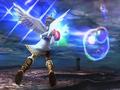 Your weapons and powers can be taken online to battle against other players. This comes in the form of two ground battle competitive modes. Light vs. Dark is basically team deathmatch. Both sides battle in an arena using their weapons and powers. Each time a team member dies, the team's health gauge lowers. The last player to die turns into either Pit or Dark Pit and becomes a lot more powerful. Once Pit dies, however, that team loses. Your weapon's value, determined by the sum of its stats and boosts, determines how much life your team loses when you die. You can bring a completely ridiculous weapon into multiplayer, but if you're no good at staying alive, you'd lose faster than if you had a weaker weapon. The other mode, Free-For-All, is exactly what it sounds like.