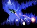 There are a lot of cool little elements in Alien Spidy in both the art and the puzzles. Spidy is a pretty funny little guy, and his idle animations hearken back to the days of Bubsy the Bobcat, where if you sat still for too long, the character yawns, looks right at you and stretches out as you push his patience. Little puzzle elements kick up the platforming a notch because they're tightly woven into the level design. For example, in one demo level, you wall-bounced like crazy, avoided mushrooms that spewed poisonous gas, and then shot like a rocket straight up at a very hungry bat. Again, Kalypso's demonstrators showed multiple ways to pass this simple bat "puzzle." One showed us a cherry that was hanging next to the bat, and if you timed a web shot just right, you'd cut it down, causing it to distract the bat and let you slip by. Another demonstrator ignored the fruit entirely, and when launched at the bat, fired machine gun-quick shots of webbing to slow him down; this stopped him just outside the bat's reach so he could happily scuttle along. It's pretty rare to have two people give a live demo of a game and show how it reflected their own play styles as they gave the demos, but it proved that you can play the game as you'd like.