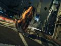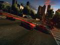 The second major change has to do with destruction. Much like Burnout or the developer's FlatOut series, you're encouraged to do anything to ensure that your opponents crash horrifically as you move up in position. Taking a page from Full Auto and Split/Second, the environment also plays a part in the chaos, as you can crash into buildings to create shortcuts or blow up other vehicles so the resulting shockwave takes out the opposition. You can't execute these vehicular takedowns (known as frags) or engage in environmental destruction all of the time. The power meter that governs your nitro boosts also acts as the key to the mayhem. While you might get lucky and frag an opponent while turning a corner, the only guaranteed frag is to activate the boost and then ram your opponent from the side or behind. Regular walls can be destroyed at any time, but trucks and major buildings can only be broken through during a boost, so that throws some strategy into the mix.