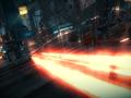 Graphically, Ridge Racer Unbounded is different in several ways. Gone are the bright landscapes with a variety of views. Instead, each track, even user-created ones, is locked into a city environment. The lighting also takes on a much darker tone, with more races taking place at dusk or under orange skies. Despite this, the game plays with lighting, such as light trails when you initiate a boost and hints of lens flare when racing against lights at dusk. The cars look fine, though there are signs of jagged edges if you look close enough, and the game goes for more of a "street" feel instead of a professional racing one. Environmental destruction looks great with just the right amount of dust, debris and fire when something gets hit. The vehicles exhibit the same love of fire when they crash, but they don't sport the same amount of detail as other games. The shower of sparks isn't there, and the metal crumpling isn't as detailed, though you see a few car parts flying as the car tumbles forward. Overall, the graphical package doesn't look as fantastic as other games, especially since this is running at a locked 30 frames per second, but it is a step up from what we've seen in the series.