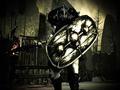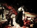 If it weren't for the camera issues, the graphics would be pretty impressive for a downloadable title. The cold and dark environments provide the right amount of bleakness, and no matter where you go, you never seem to escape torrents of rain or flurries of snow. Contrasting against the environments is the constant blood trail that is a grim but effective way to lead the player. Characters are well designed, and they sport some nice details that you won't appreciate until you get a close-up. Interestingly, just about all of the important characters in the game wear a mask or helmet, and while one would complain that their lack of facial expressions robs the scenes of some emotion, there's always one emotion per character at all times. Despite the erratic camera, the frame rate holds up most of the time, dipping only when loading to a new scene.