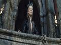 The tale starts off with a queen giving birth to a baby girl with lips as red as blood, skin as white as snow, and hair as black as a raven (or ebony). The royal family is joyous, but a few years later, the queen passes away from illness. The king remains a widower until a mysterious army attacks. His troops easily vanquish the enemies, who disintegrate into obsidian shards upon destruction. The enemy army's prisoner is Ravenna (Charlize Theron), and the king is so deeply infatuated with her beauty that he marries her the very next day. Ravenna seizes power on their wedding night by slaying the king and becoming queen of the land. The Queen banishes her stepdaughter to a jail cell and begins her reign of terror, maintaining her youthful beauty by using magic to absorb life from the kingdom's young girls.