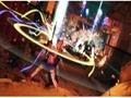 Graphically, Lollipop Chainsaw eschews the typical dark atmosphere of a zombie game in favor of something much more colorful. The colors used for the cel-shading are meant to give the game a comic book aesthetic; it's reinforced by the cut scenes, which mix the in-game art style with old newsprint comic panels. There are even black ink dots in a few of the static scenes and loading screens. The animations are great when you're executing moves, and the slow motion in some shots does a good job of making mundane things feel more exciting than normal. The particle effects really grab your attention because they're implemented well and there's so much of it at all times. There's plenty of blood when zombie limbs are cut, but the abundance of glitter and rainbow arches on-screen at any one time is amazing.