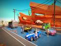 Stunt Park can be experienced in a single-player format, but playing with others is ideal. Basically, Stunt Park removes any kind of actual track format from the game and gives you a more open-world, sandbox style environment to explore. The only real goal is to collect a number of trophies hidden around the world, some of which are fairly obvious and easy to see, whereas others take a certain level of ingenuity to reach. Each stage featured in Stunt Park is filled with half-pipes, loop-the-loops, ramps and other oddball obstacles that'll utilize Joy Ride Turbo's loose physics system. As an added bonus, each level is filled with collectible coins to unlock the different skins for each vehicle, along with hidden boxes that contain parts that unlock different cars for all game modes.