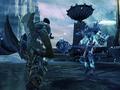 Death is fast. Unlike his brother War, Death is a speed demon who moves across the environment like a Prince of Persia protagonist. He's as dodgy and nimble in combat as Ryu Hayabusa. This comes with a decrease in overall durability, though, so you'll have to spend a lot of time dodging attacks. Weaker enemies can't do too much to you, but they can slowly whittle down your health bar. Larger enemies can sometimes take most of your health with one attack, even on the Normal mode, and "large" doesn't always mean "slow." In this way, the combat is paced like Ninja Gaiden, with a focus on avoiding attacks and striking at the perfect movement. It is much less punishing than that brutal franchise.