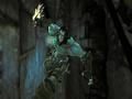 As such, the structure is extremely similar to that of a The Legend of Zelda game. You'll traveling from dungeon to dungeon, collecting new powers and defeating bosses along the way. Darksiders II manages to avoid feeling overly linear by including a hefty dose of optional side-quests. Not much of the map is wasted. If you see a big ruin or unusual path, you'll probably go there at some point or another. Early on, I found a side-quest that took me into a rather lengthy minidungeon, where I found a gigantic flaming phoenix that I had to fight to pry a new scythe from its stomach. It was just a bonus quest, but it sure felt like a full-fledged dungeon.
