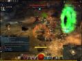 The title also tries to avert the need for spawn-camping by making items interactive on a per-character basis. Enemies count if you hit them for a minimum amount of damage before they die, so that encourages players to team up to mob monsters. Death is also a lot more exciting than in most games. When reduced to 0 HP, your character drops to the ground, and a special life bar comes into view. While on the ground, you have four special actions devoted to fighting for your life. Kill an enemy before the bar drops, and you're up. Get revived by another player, you're up. Fail either, and you're dead. Click on any unlocked waypoint, pay a fee, and return to play.
