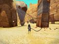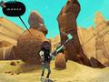 Graphically, the art style pushes against what most people expect from indie games. The 3-D world may consist of nothing but desert and a dark neon-lit set of rooms, but the colors stand out due to the cel-shading. The outlines give it the feel of an indie comic book, while the character designs look like they could be rough sketches brought to life, something that looks more endearing than disgusting. From a technical standpoint, the game runs smoothly on pretty low-spec hardware, and the rather high frame rate doesn't drop when lots of things are happening on-screen. For an engine that was completely done in-house, it speaks wonders of its power.