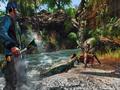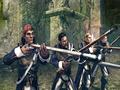 Crew can also be used as cannon fodder by exploiting how easy it is to bring them back from "death." In more than one tough battle, I'd run circles around enemies until my partner distracted them, taking the brunt of their attacks while I picked them off with a musket or went in slashing. If my friend went down, I'd maneuver until I could bring them back, and then repeat the whole process. They can also be as dumb as rocks when it comes to negotiating corners, down paths, or following you across shallow water, only to appear from thin air when the game forces them to catch up with you. Otherwise, they're like having indestructible robots that you can't order around other than to stay put, go home or chat.