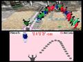 The change from marbles or spheres to human beings gives Tokyo Crash Mobs a chance to add some gameplay mechanics that significantly alter the gameplay. For Rolling stages, this means the ability for the scenesters to jump by your command or on their own, causing you to access other people in the line or completely miss your target, respectively. There's also the ability for the scenesters to speed up the line until they reach the danger zone, quickly accelerating things from a calm state to a panicked one. For Throwing stages, objects like flower pots and lampposts can block a spot, though a flower pot can be broken if you throw a scenester at it. Some scenesters can also call in others to cut in line while some stages have groups of scenesters change their lines at set time intervals. The boss fights, meanwhile, have brightly colored ninjas that try to hit you and giant smoke bombs that you need to avoid.