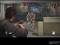 Graphically, the title ranges from passable to below average. There is some nice lens flare coming from the laser sights of enemy sniper rifles. The puffs of smoke that appear when someone dies are nice. The character models for the two heroes look decent as long as you tell yourself that they are bad representations of both actors. The few models they had for the Deados aren't that bad. They could use some work, especially when you can see that all of the weapons float beside characters instead of properly attaching themselves to them. The environments are rather bland, with the same brown and gray color scheme of this console generation, and the accompanying effects to each environment aren't pulled off very well. Most items don't react to your movements and gunfire, while small things like paper in a library shoot up wildly from the slightest of movements instead of being realistically shuffled, depending on your movement speed. Texture pop-up isn't severe, but it is seen in things like small plastic chairs when you turn a corner or just about anything else. Animations aren't very smooth, and some of them are rather exaggerated, such as seeing a shielded Deado stretch his arm much further than normal to hit you with the car door. At the very least, the game graphics aren't very demanding, so a decent rig could easily run this at 60 frames per second quite.