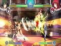 The characters all play very differently from one another, too, so you really have to study up on a character to be remotely effective. Multi, for example, is a mop-wielding robot with decent range and good air counters while Manaka is very short-range with tricky moves that involve stacks of books she carries at all times. There are even differences in movement, with Tamaki being very fast for a grappler while Chirazu is rather slow for a striker. There's depth if you're willing to look for it, and those who rely on pure button-mashing will get hurt badly.