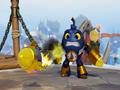 By default, you have no player characters in Skylanders. Instead, your potential playable cast is determined by the out-of-game action figures. Most copies of Skylanders come with two or three figures, but the rest need to be purchased separately. When you place a Skylander figure on the Portal of Power, which is included with the game, you can begin playing as that character. You can swap characters at any time by removing the figure from the portal. Put multiple figures on the portal at once, and you have multiplayer. All your character's information is stored on the action figure. When it levels up or unlocks new moves, you keep them as long as you continue to own that figure, even if you go to a friend's house to play his copy of Skylanders.