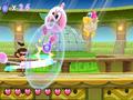 Graphically, HarmoKnight continues the same standards of almost every Nintendo-published game. The character designs are very cartoon-like, and the environments take on a similar quality, especially with the appearances of onomatopoeia during big boss attacks and in cut scenes. The animations are smooth, and the expressions are fairly easy to read on each character. Everything carries with it a wide and bright color range, and the frame rate remains solid. There's nothing here that really pushes the system.