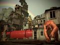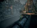 Graphically, Papo & Yo is beautiful because of the art direction. The whimsy of Quico's imagination helps to make the dirtiest parts of the favela look hopeful and beautiful. The manipulation of that world is also a sight to behold, as the ability to bend buildings to your will or make cubes of water act as stable platforms never gets old. Even without the world manipulation, the favelas look great. A bulk of the areas look similar, but you'll see splashes of artistry in the different murals, some of which are so good that you'll pause to appreciate them. The characters also look great, with Monster's rough leathery texturing to Quico's constantly changing appearances being the highlights. On the PC, the graphics remain the same as the PS3 version, though the higher resolution support sharpens a few things and issues of texture pop-in are all but gone. However, a few issues do remain, such as some collision boxes being too big and the prevalent amount of clipping on other objects, like hint boxes and frogs. While not exactly a revolutionary view of how good Unreal Engine 3 can make games look, it is a clear step above what most people envision from an indie game.