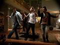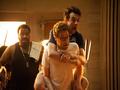 While they're out and about, numerous blue rays are beaming up people across the city. The duo fights through the explosions and car crashes to take cover at Franco's party — only to find that nothing has happened to the party or the partygoers. After a big earthquake hits, everyone runs outside to see that Hollywood has gone up in flames, and sinkholes are appearing everywhere. A lot of people meet their end, but Baruchel, Franco, Jonah Hill, Craig Robinson and Rogen survive and hope that, as famous movie stars, they'll be quickly rescued.