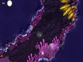 The first thing that'll strike you is how gorgeous Beatbuddy looks. The background and foreground elements that comprise the watery environments are fantastically rendered. There's a great opening sequence in the first stage that has you emerging from hibernation and exiting the long-forgotten remains of a gigantic subaquatic creature. The stage name that corresponds with the level music slowly fades in and out. Each song featured is unique for every stage, with various artists providing the wildly eclectic themes throughout Beatbuddy.