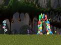 Like the sound, the graphics also do the game justice. The color scheme is bright, and it complements the rather "out there" design quite nicely. Some of the movements are exaggerated, but it's funny to see math formulas and symbols come out as flourishes after an attack. The backgrounds bring out the whole idea of abstraction in an atomic level very well, and it's further accentuated by the constantly moving backgrounds. About the only area of the game that looks dull is the foreground. The various symbols and scientific references peppered throughout are nice, but the terrain is rather dull and forgettable when compared to everything else.