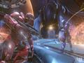 During our hands-on time with the multiplayer beta, we got the chance to try three different maps. Our group started out playing team slayer on Truth and followed it up with more slayer on Empire. Truth is a remake of the classic Halo 2 map Midship, though it seems to have increased in size to account for the faster movement options. Empire is set in a futuristic city, and the map makes excellent use of vertical space. Although playing through both was fun, neither felt radically different from traditional Halo. Tweaked, yes. Completely different? Not at all. Then we switched to Breakout.