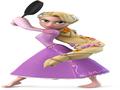 In-game, Rapunzel sports a decent amount of animations when idle. While she isn't a very talkative person, the lines she spouts are true to character; this is helped by the fact that she's still voiced by Mandy Moore in the game. Her attacks are varied in type but are all centered around her skillet. In melee range, she can unleash a skillet attack combo that has her jumping in various positions before ending with a circular spin. From a distance, she throws her skillet in a straight line. Unfortunately, she has no other packs or tools to speak of, and that's a shame for those who were hoping for an appearance from her chameleon friend Pascal, especially since she seems to talk to him in a few of her lines.