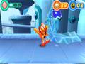 When you start out, the game feels exactly like any 2-D platformer should. Pac travels through the world picking up pellets in lieu of coins, and every 100 pellets give him an extra life. He can eat food to replenish his health and perform a double-jump, which actually hovers for a bit before pushing him upward. He can also eat ghosts, and unlike the arcade original, he doesn't need to ingest a power pellet before he can devour them. He can also stun bigger enemies to make them more vulnerable to multiple chomps. New to the formula are special power pellets that give Pac different abilities. The chameleon pellet, for example, lets him use his tongue to slingshot himself or grab enemies from afar. The magnet pellet lets him bring enemies closer, and the ice pellet unleashes a freezing breath to stun explosive blocks and enemies. If you've played the console game, the powers are pretty much the same, though they're slightly diluted to make sense in the 2-D world.